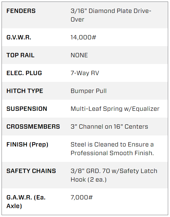 Equipped with tandem axles, electric brakes, and LED lighting, this trailer delivers reliable performance and safety on the road. Perfect for contractors, landscapers, farmers, and industrial operators, it allows for efficient transport of equipment while maintaining strength and durability. The drive-over fender design simplifies loading and unloading without damaging tires.
