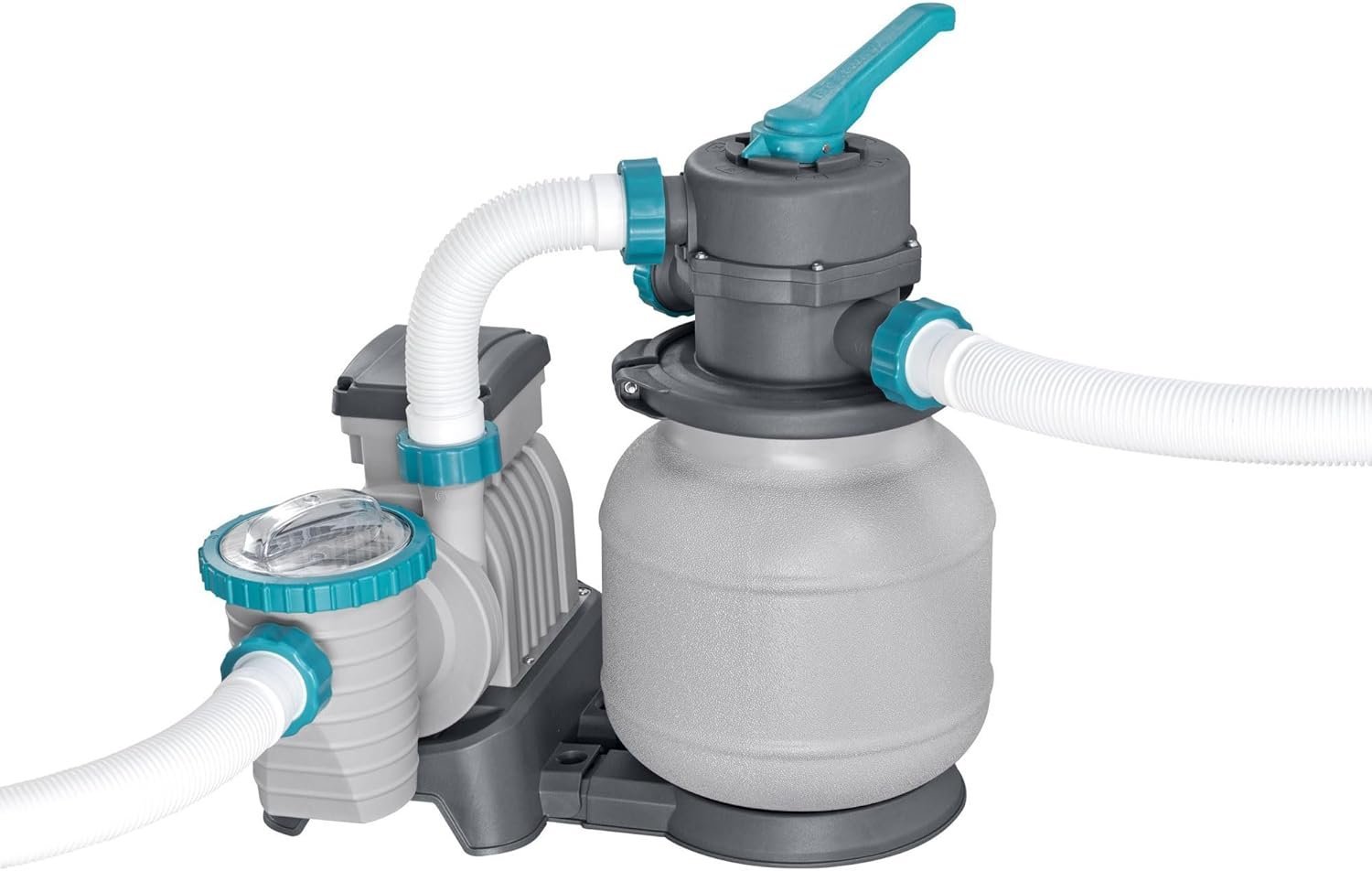 Included Accessories: Includes a 1,600 GPH sand filter pump, 250 grams of Polysphere pool filtration balls (washable, reusable sand filtration replacement), a ladder, pool cover, and a repair patch