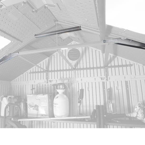 The Lifetime 7 ft. 8 in. W x 19 ft. 8 in. D Plastic Storage Shed features (2) windows, (2) sets of shutters, (1) full-length ridge skylight, (1) 90″ shelf, (4) corner shelves, and (1) set of two peg strips. It comes in (4) boxes. Lifetime’s 8-foot wide Outdoor Storage Sheds are the perfect solution to your storage needs. Built with durable, dual-wall high-density polyethylene, our sheds are steel-reinforced and low-maintenance. With various features including shatterproof windows, skylights, custom shelving, and much more, a Lifetime Shed is a perfect addition to your backyard.