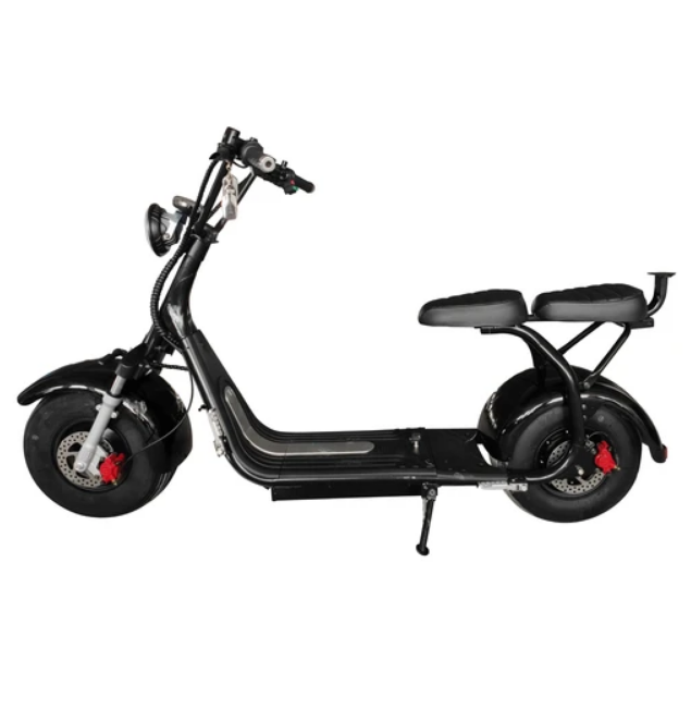 • 2000W motor• Battery range-12AH-12miles, 20AH-20miles, 30AH-30miles range• 3 speed control button • Seats up to two people• Twist throttle• Large LED display with battery life and speedometer• Front suspension• Removable battery• Remote start/alarm• Loud alarm and horn• Front and rear passenger foot rest• Bright led headlight• Brake light• Front and rear turning signal• Side mirrors• Scooter weight 150 pounds• Weight capacity is 350 pounds• Dimension 76*15*34 inches