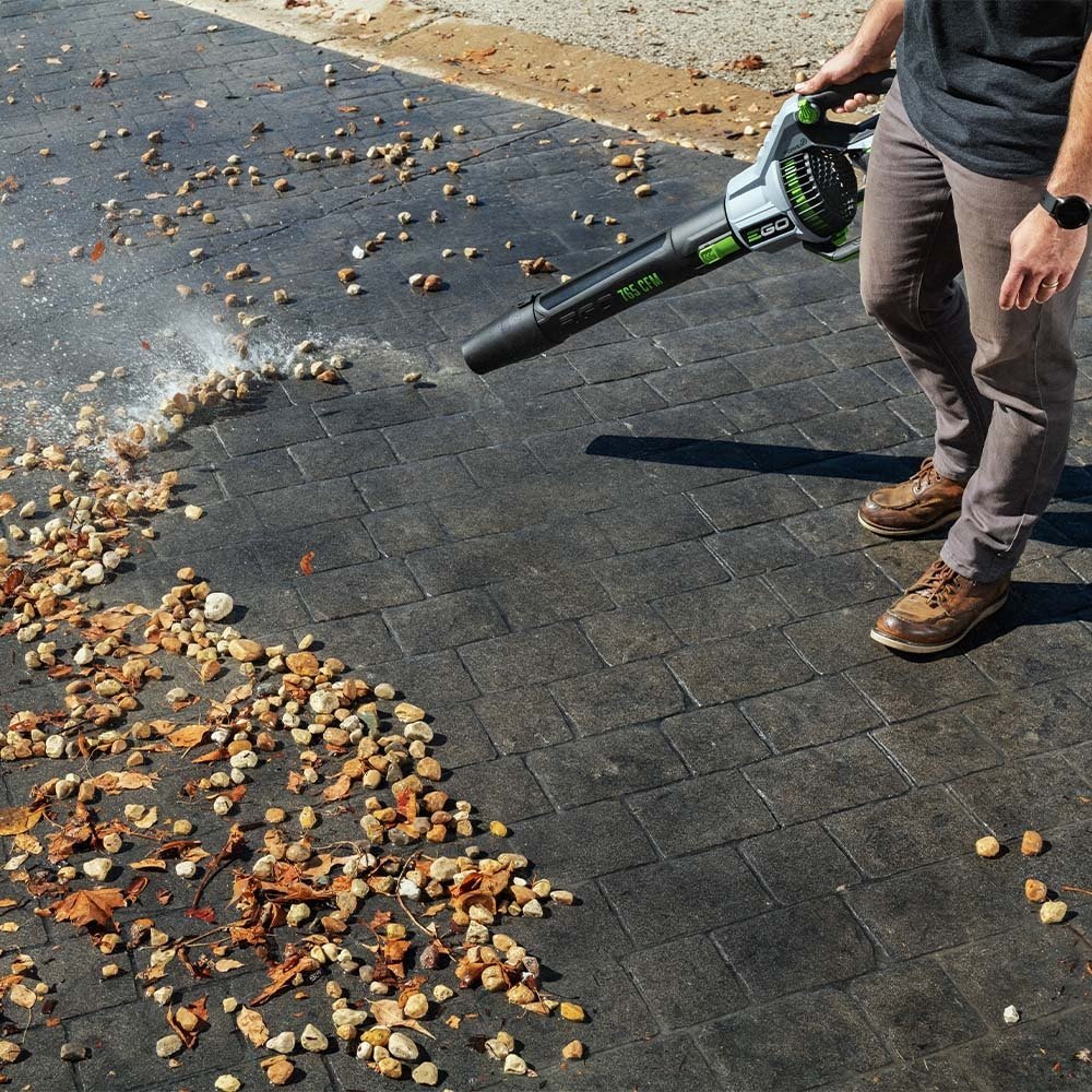 The EGO POWER+ 765 CFM Blower delivers powerful clearing performance with air speeds up to 200 MPH and up to 765 CFM. Its speed control dial allows you to adjust your airflow from 260 CFM to 580 CFM for ultimate control. Activate turbo mode when you need to power through heavy debris including wet leaves, rocks, mud, and snow at 765 CFM and up to 200 MPH with the tapered nozzle attached. The variable speed trigger introduces a redesigned cruise control dial for consistent blowing. This leaf blower features a high-efficiency brushless motor that delivers long runtimes, low vibrations, and an extended motor life. Turbine fan engineering, inspired by advanced aeronautics technology, performs better than premium gas leaf blowers. The included tapered and spread nozzles make clearing debris in all conditions easy, and IPX4 weather-resistant construction delivers protection from the elements. This cordless leaf blower delivers up to 90 minutes of average runtime on a single charge with the recommended 56V 5.0Ah ARC Lithium™ battery (available separately). This quiet, lightweight, and compact electric leaf blower gets the job done faster and quieter than gas. Experience Power Beyond Belief™ without the noise, fuss, or fumes.