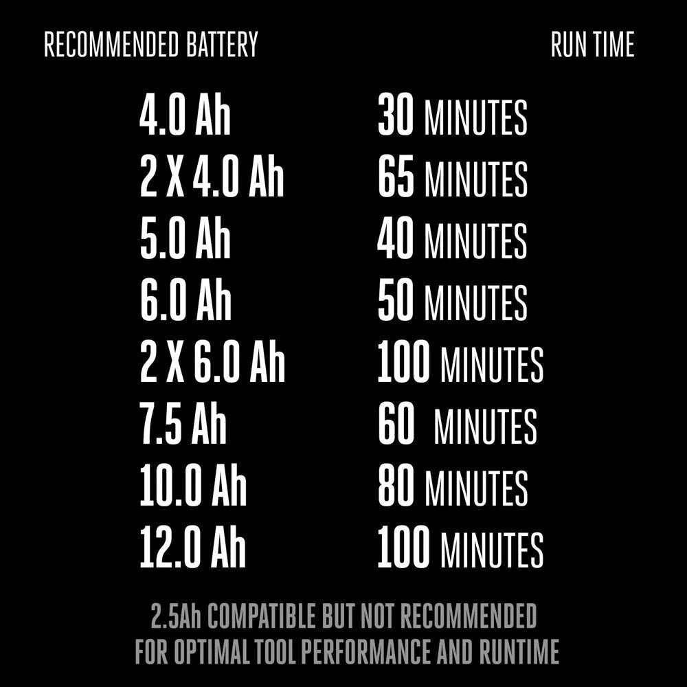 Up to 60 minutes of runtime on a single charge with the recommended 56V 7.5Ah ARC Lithium™ battery