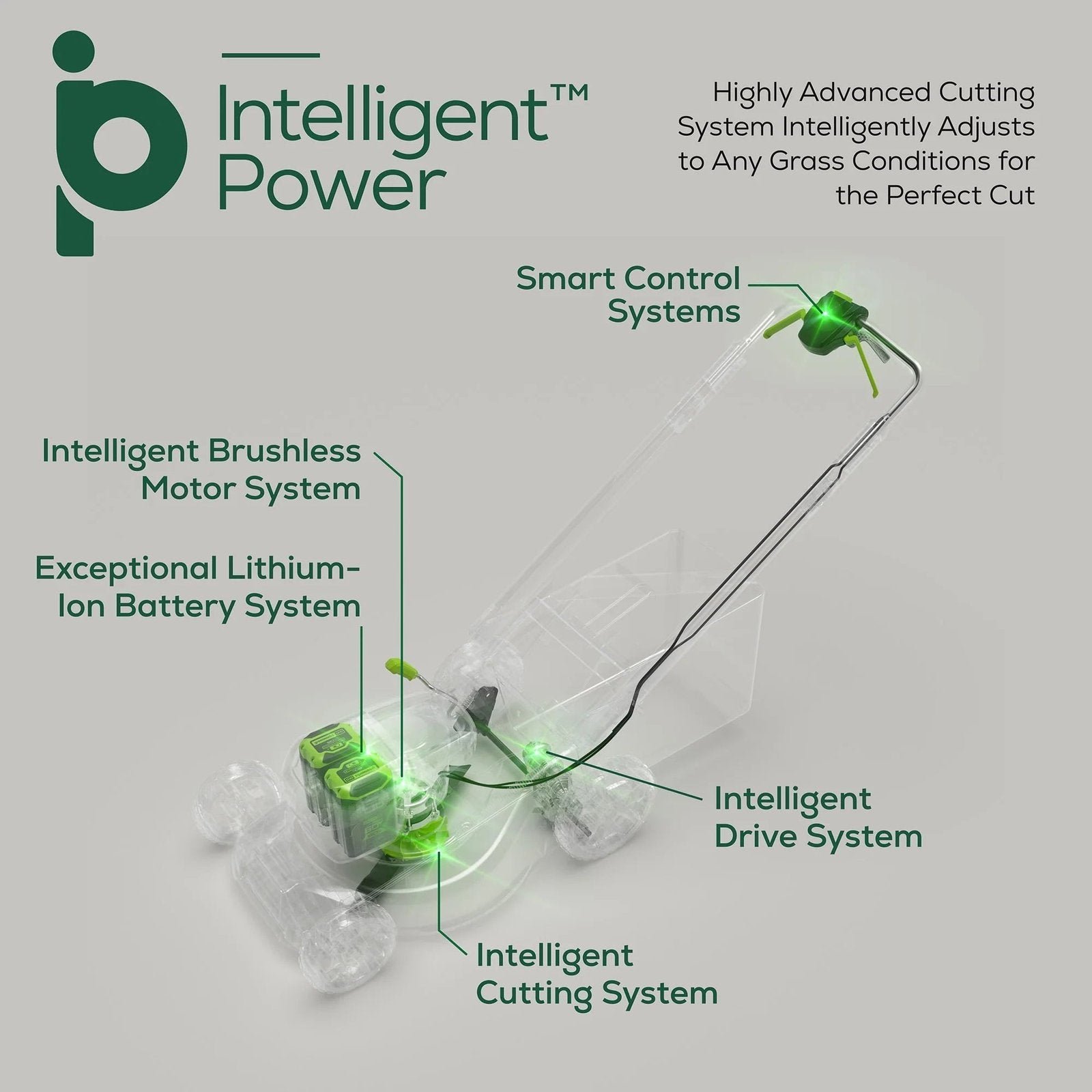 Self-propelled lawn mower includes two 60V 4.0 Ah batteries & dual port turbo charger