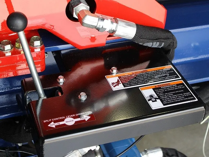 This Iron and Oak offers a unique splitting wedge that provides wider splitting separation, minimizing splitting distance and reducing cycle time. Auto idle reduction saves fuel and improves engine life. A full size log table capable of splitting up to 24” logs in length, eliminates the need to bend down to pick up split wood (save your back!).