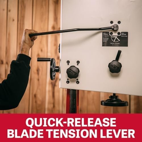 Designed to perform, the JET 15” bandsaw delivers more re-saw capacity, greater throat depth and the horsepower you need to tackle bigger boards, create smoother edges and master the intricate cuts. The heavy-duty cast-iron fence system is built to give you the sturdiness and support you need for every project and features a micro-adjust dial for exact placement. The table is slotted and the guide post has a stress-free magnetic door on the front for efficient blade changes. Large, independently adjustable guides are tool-less to save you time on set up. The JET 15” steel frame bandsaw is engineered to build great projects through superior performance.
