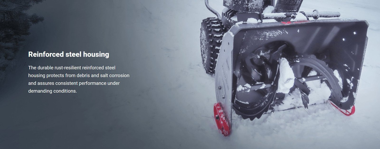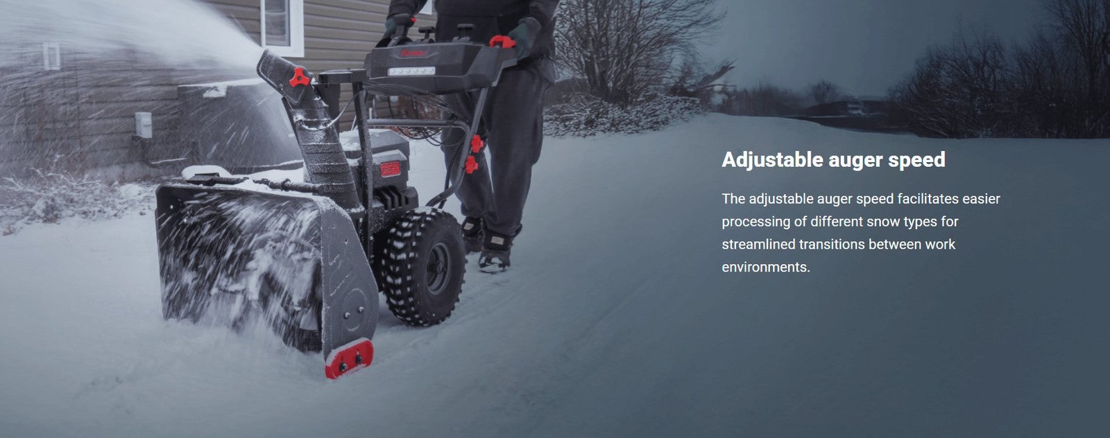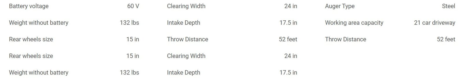 Powered by four 60V 5.0Ah lithium-ion batteries, it offers long-lasting performance and extended runtime. The high-torque brushless motor drives a durable 24-inch steel auger and impeller system, easily tackling snow up to 21 inches deep. The dual-stage design breaks up packed snow and throws it far from your clearing path.