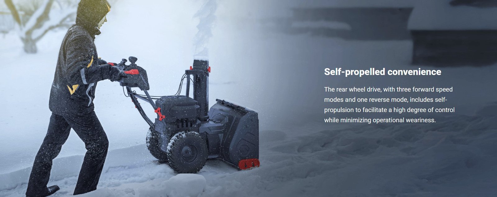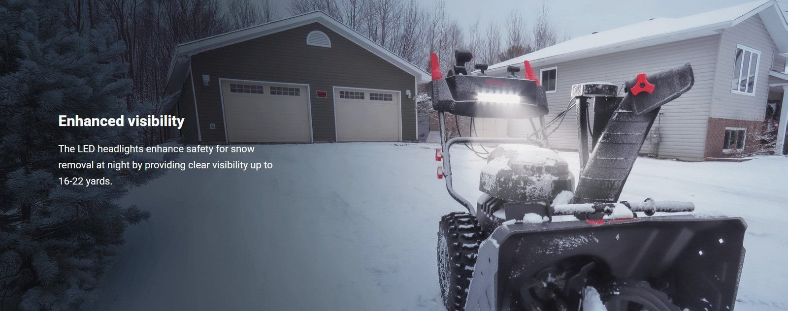 With variable-speed self-propelled drive, LED headlights, and a 180° adjustable chute, you get full control even in low-light conditions. The 8-amp dual-port charger ensures fast charging for quick turnarounds. Perfect for large driveways, sidewalks, and tough winter conditions.