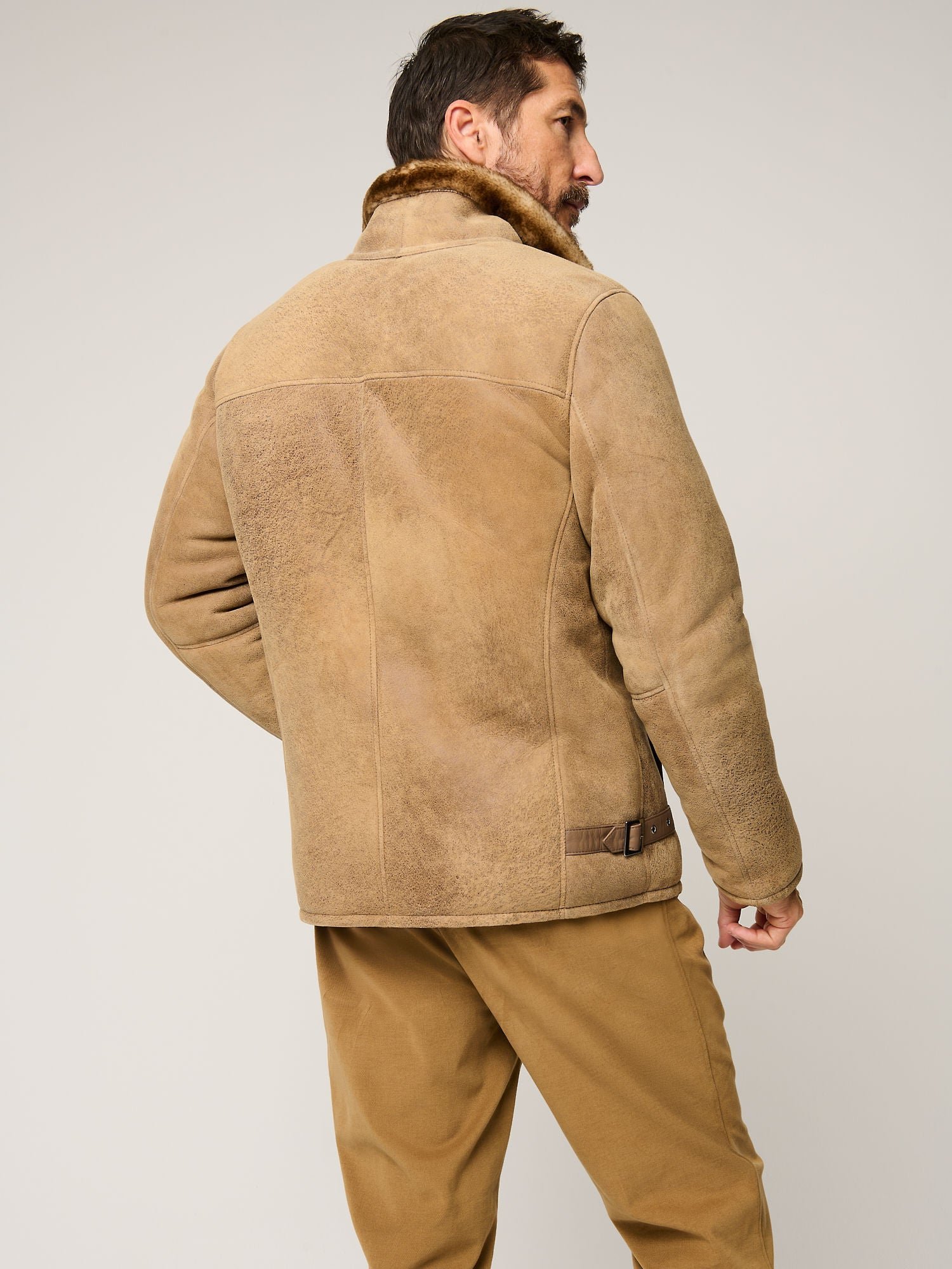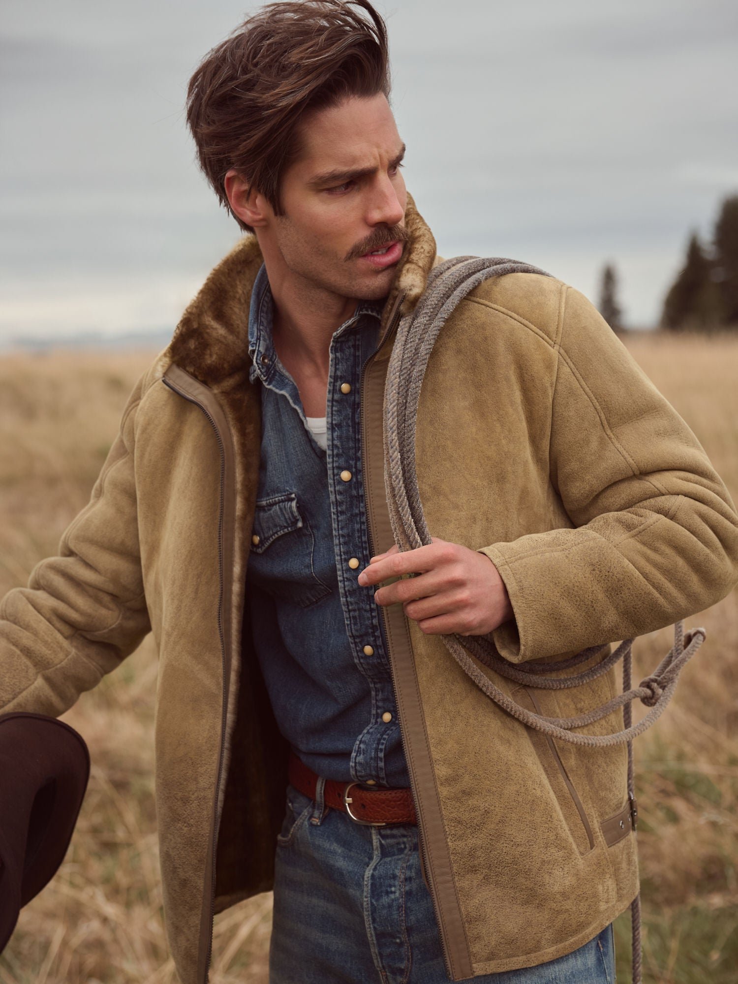 Striking the perfect balance between rugged warmth and thoughtful design, the Lance sheepskin jacket is prepared to take on the coldest days of the year. Artisan-crafted from insulating shearling and featuring smooth leather accents and a buckle-tab collar, this coat is versatile enough for both open landscapes and urban environments.