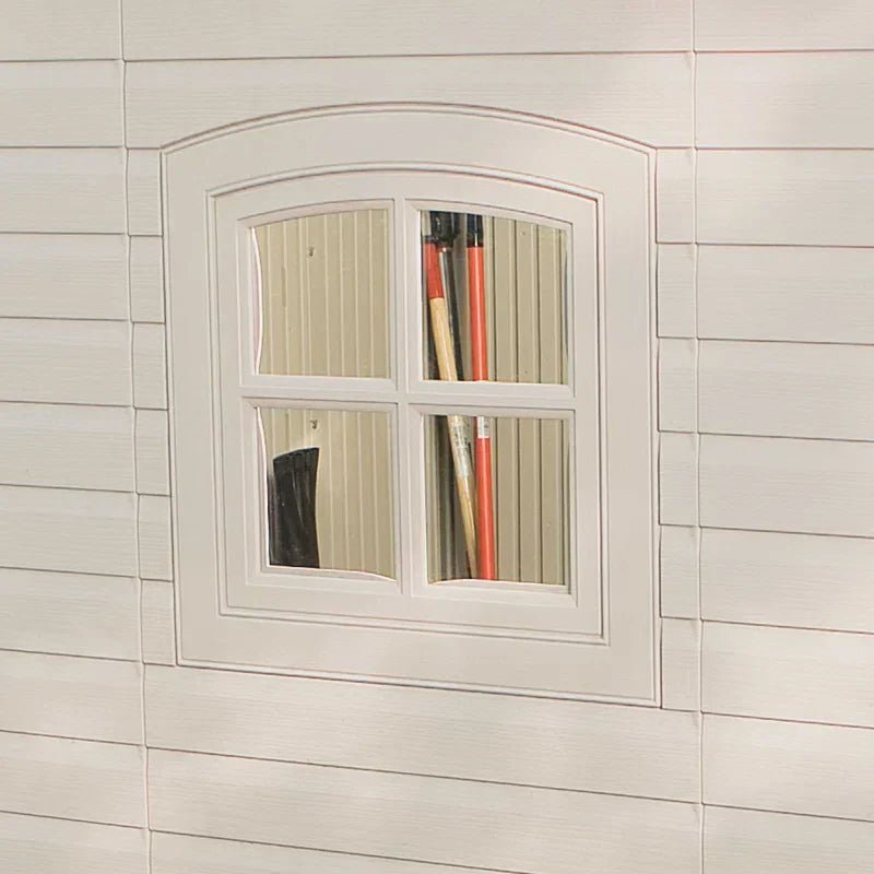 ✔ Plenty of space for large tools, lawn equipment, bicycles, patio furniture, and seasonal items ✔ Built-in shelving system offers customizable organization options ✔ Two shatterproof windows with shutters allow for natural lighting and ventilation