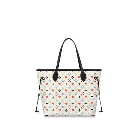 For Cruise 2021, Nicolas Ghesquière Styles the Neverfull MM Bag in a transformed Game On Monogram canvas. The multi-colored theme replaces a few of those Monogram Flowers with red hearts. On the front of this bag, there is a helpful playing-card pocket. The bag contains a detachable zipped pouch, whose layout also reveals that the impact of cards.