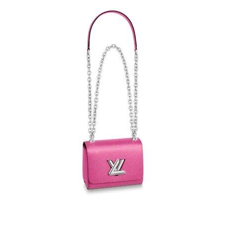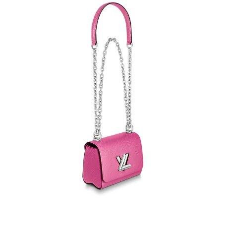 The Twist Mini handbag, with its contemporary interpretation of the traditional L.V Twist lock, is crafted from Epi grained leather with a sliding silver-tone chain. The new mini-version of the long-lasting Twist layout is perfect for a day-to-night use. Its ingeniously designed “wave” base expands to save more requirements.