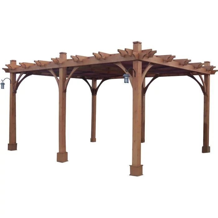 The 12 ft. × 16 ft. Breeze Pergola with finger-jointed post kits are made with Western Red Cedar will add beauty and elegance to your patio and garden setting instantly. Start enjoying a meal or just hang out with friends in style