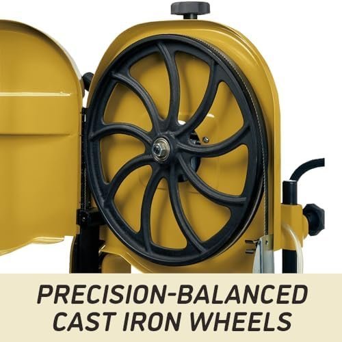 Precision-balanced nine-spoke cast iron wheels reduces vibration and creates smoother blade travel