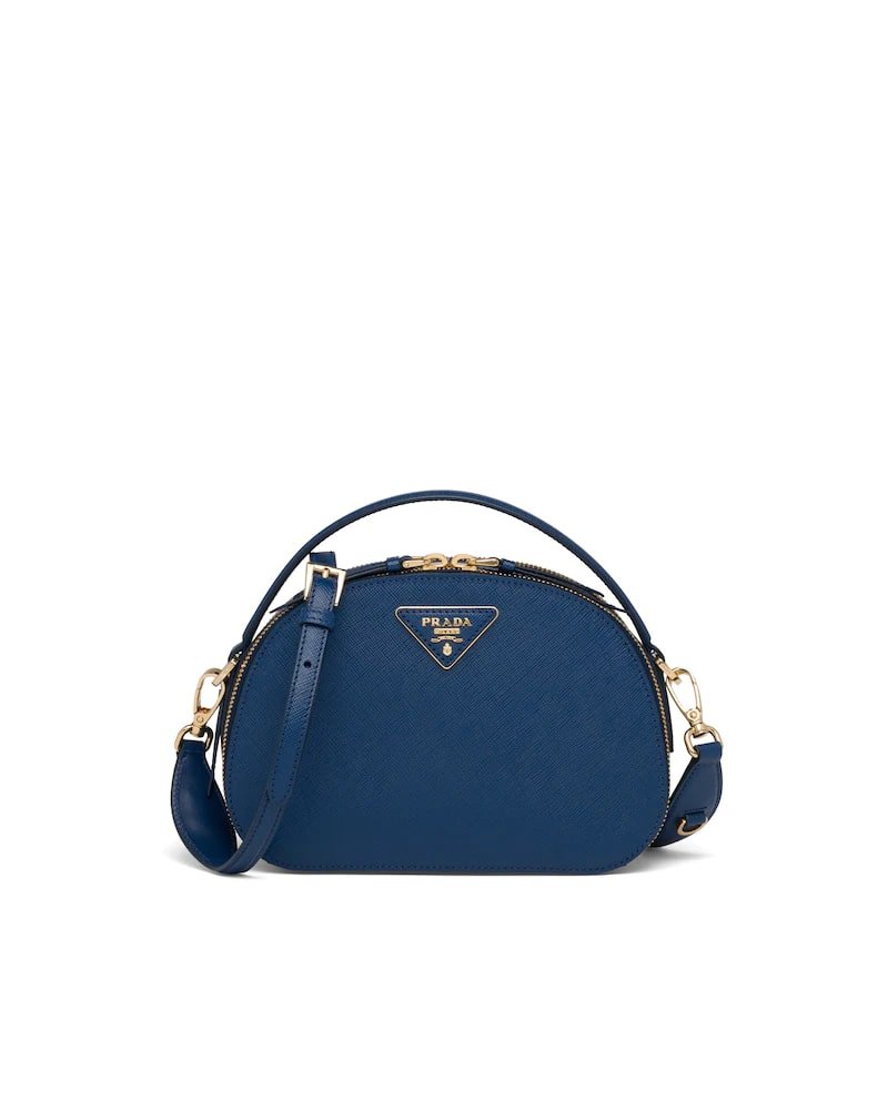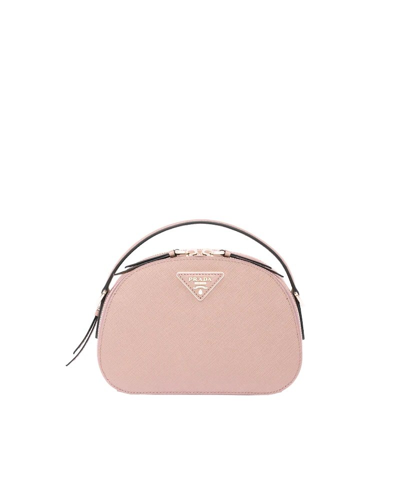 The rounded design of the Prada Odette bag is inspired by photographers’ camera cases. Made of fine Saffiano leather and decorated with the iconic triangle logo, the bag can be carried by hand or worn with a shoulder strap.