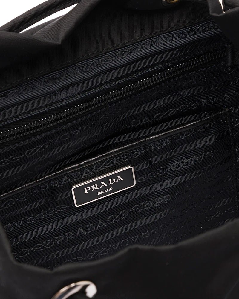 Prada logo nylon lining with two pockets, one with a zipper