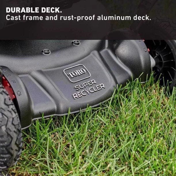 We’re not going to lie you’re gonna get a lot of double-takes when you’re mowing with this suave-looking bad boy. Little do they know this hungry herbivore is a wiz at helping protect the earth, reducing your water and fertilizer use with the Super Recycler’s Cutting System. Take mowing creature comforts to the next level with flex Handle suspension and hassle-free maintenance. When you’re done, lock and store your Toro practically anywhere in your garage or shed with SmartStow. And you can rest easy knowing Toro stands behind its mowers with a 5-year full warranty.