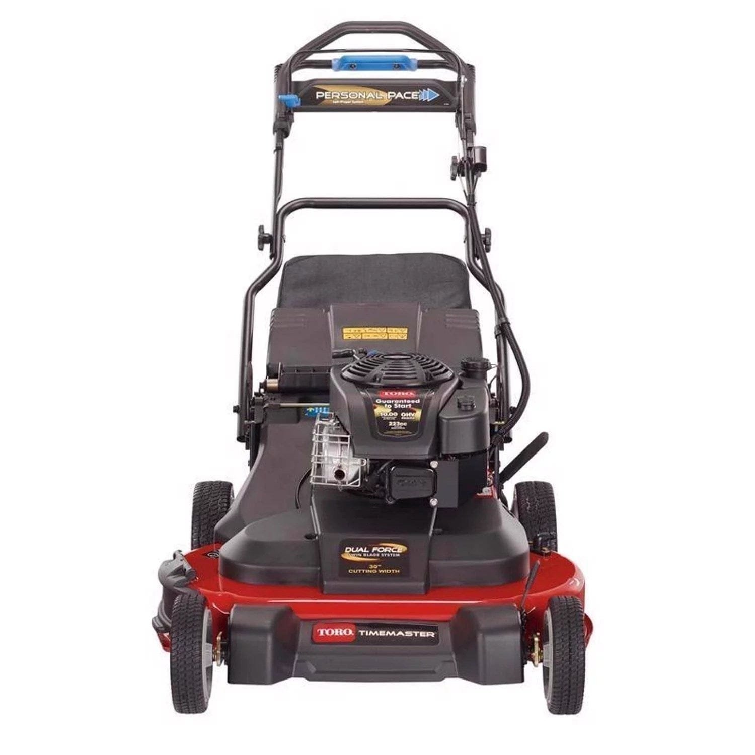 When you have a big yard and a busy schedule, you need the Toro 21199 30 in. TimeMaster® 223cc Self-Propelled Lawn Mower on your side. This lawn mower lets you make quick work of an overgrown lawn, so you can get the job done faster and enjoy the rest of your weekend worry-free. Toro packed a ton of innovative features into this self-propelled mower to create a machine that’s powerful, fast, comfortable and easy to use. for starters, the mower has a massive 30 in. deck that cuts a wider path on every pass. It also uses Personal Pace technology to ensure the mower works with you – not against you. As you push the mower, it will sense your speed and automatically adjust to match your pace.