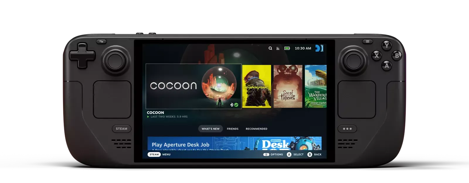 Ergonomic Design – Comfortable controls with full-size thumbsticks, D-pad, triggers, and trackpads.
