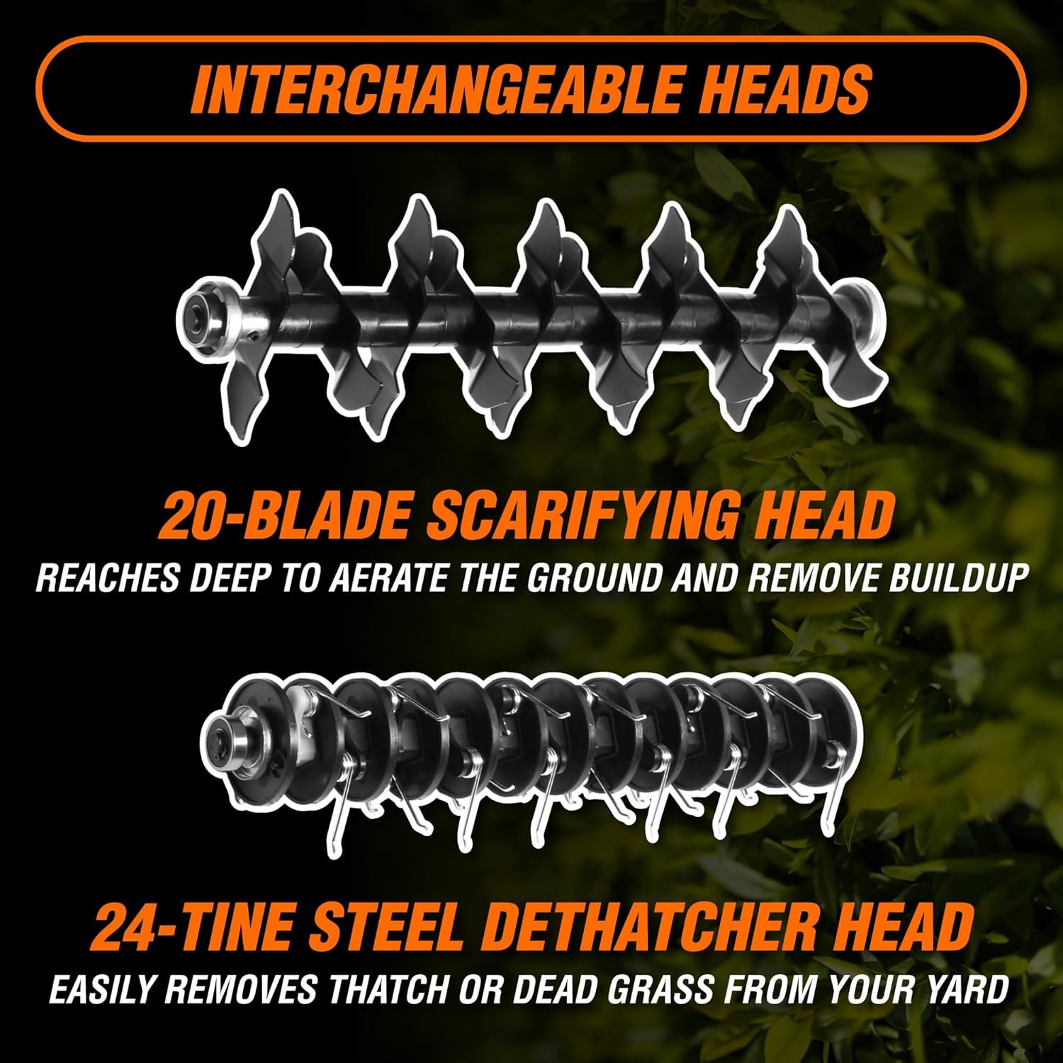 This unit includes interchangeable dethatching and scarifying blades to support year-round turf maintenance. The dethatcher removes layers of dead grass and debris, while the scarifier cuts deeper into the soil to boost aeration and encourage root development. With five adjustable depth levels, you can select the perfect setting for early spring cleanup, mid-season maintenance, or fall restoration.