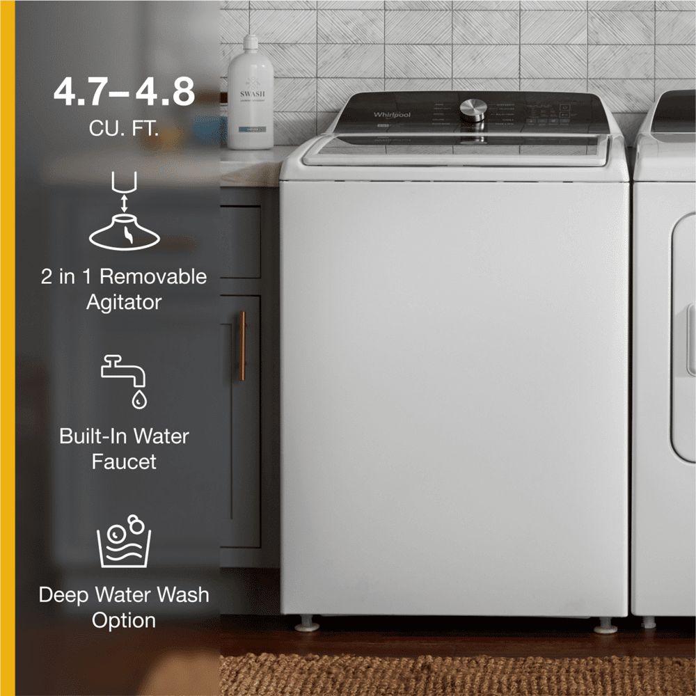 Whirlpool 4.7 – 4.8 Cu. Ft. Top Load Washing Machine with Removable Agitator